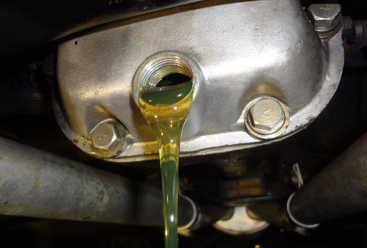 今回使用したオイル量はマニュアル通り、約1.5リットルくらい。あふれ出てくる事を確認するため、それよりちょっとだけ多く入れた感じです。