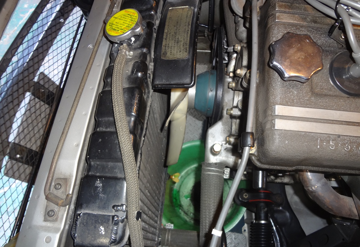 ドレンを開け、ラジエターキャップを開けるとジャバジャバ出てきます。